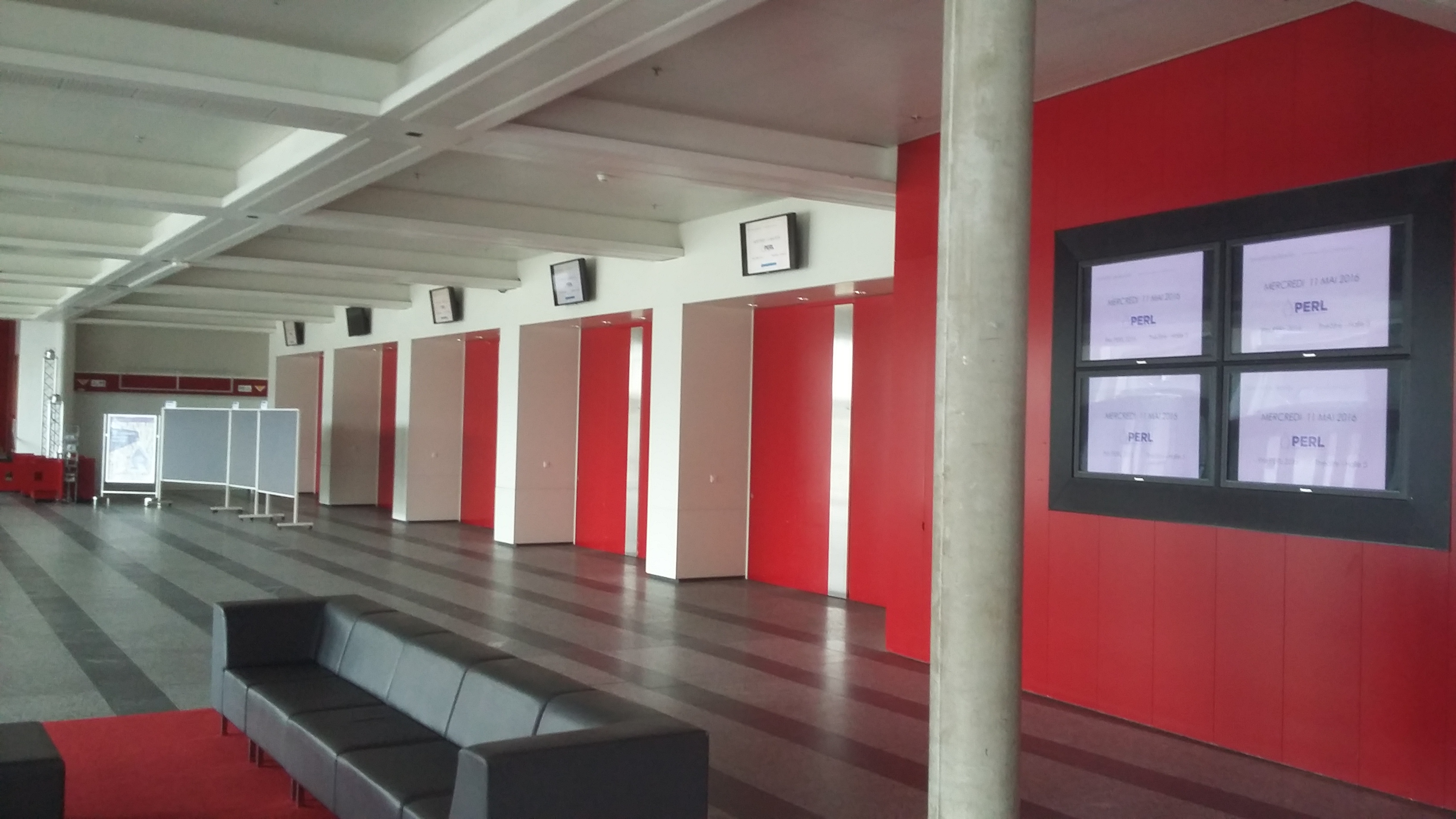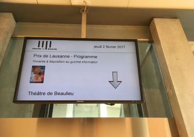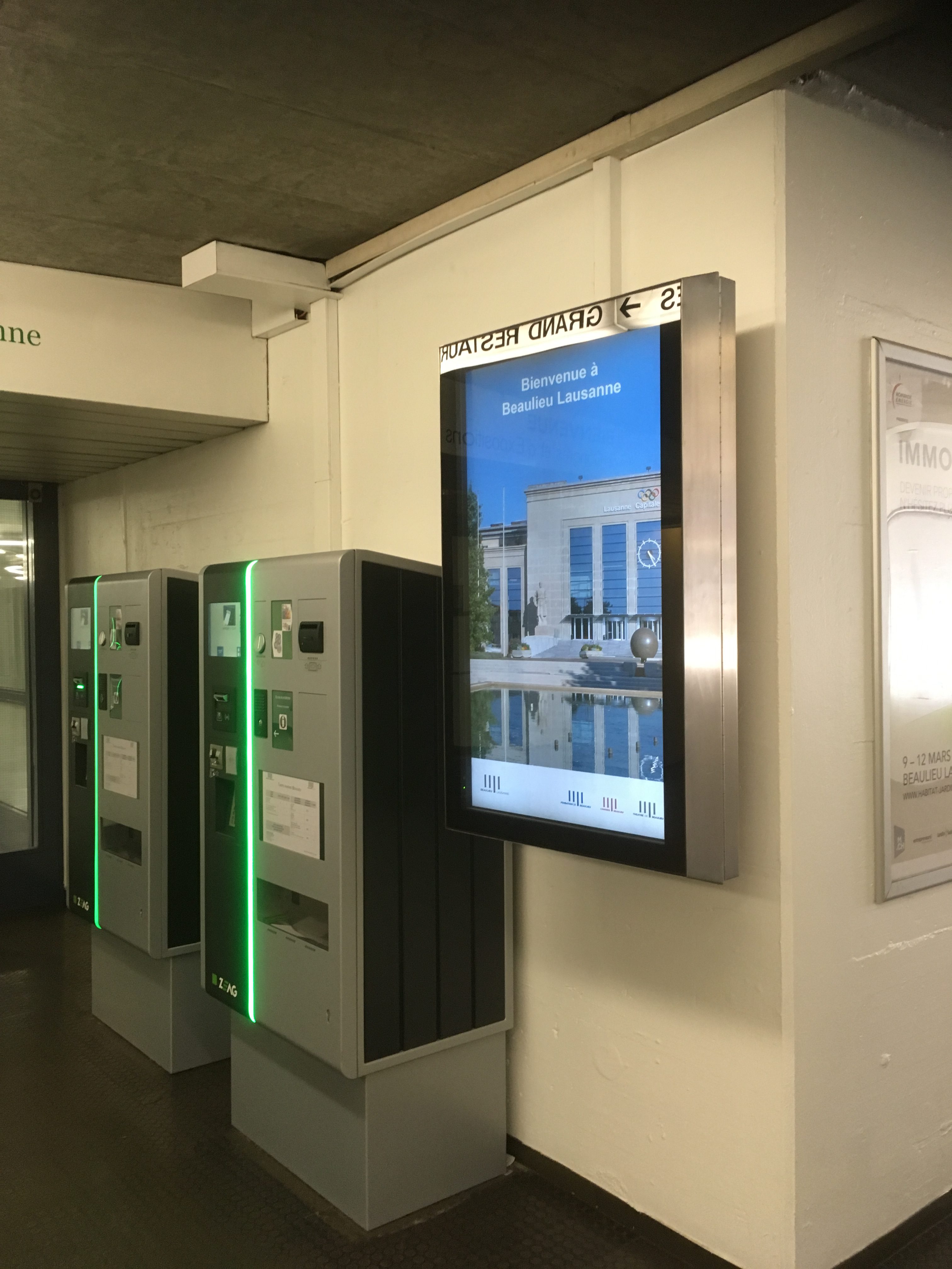 Le Centre de Congrès Beaulieu Lausanne utilise une signalétique digitale sur un réseau de plusieurs écrans pour guider les visiteurs (wayfinding).
