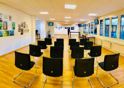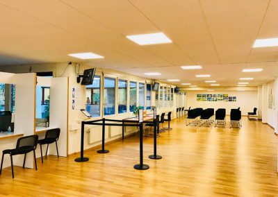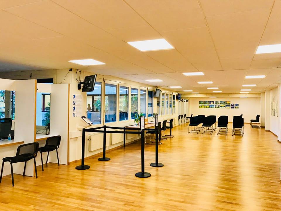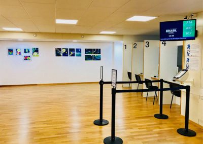 Les visiteurs prennent un ticket depuis la borne tactile en libre service et sont ensuite appelé à se rendre à l’un des 8 guichets grâce à l’écran d’affichage et au son émis.