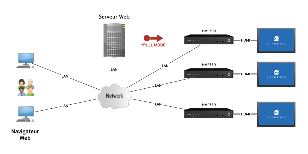 Nos équipements SpinetiX HMP interrogent le serveur périodiquement et téléchargent le contenu si nécessaire.